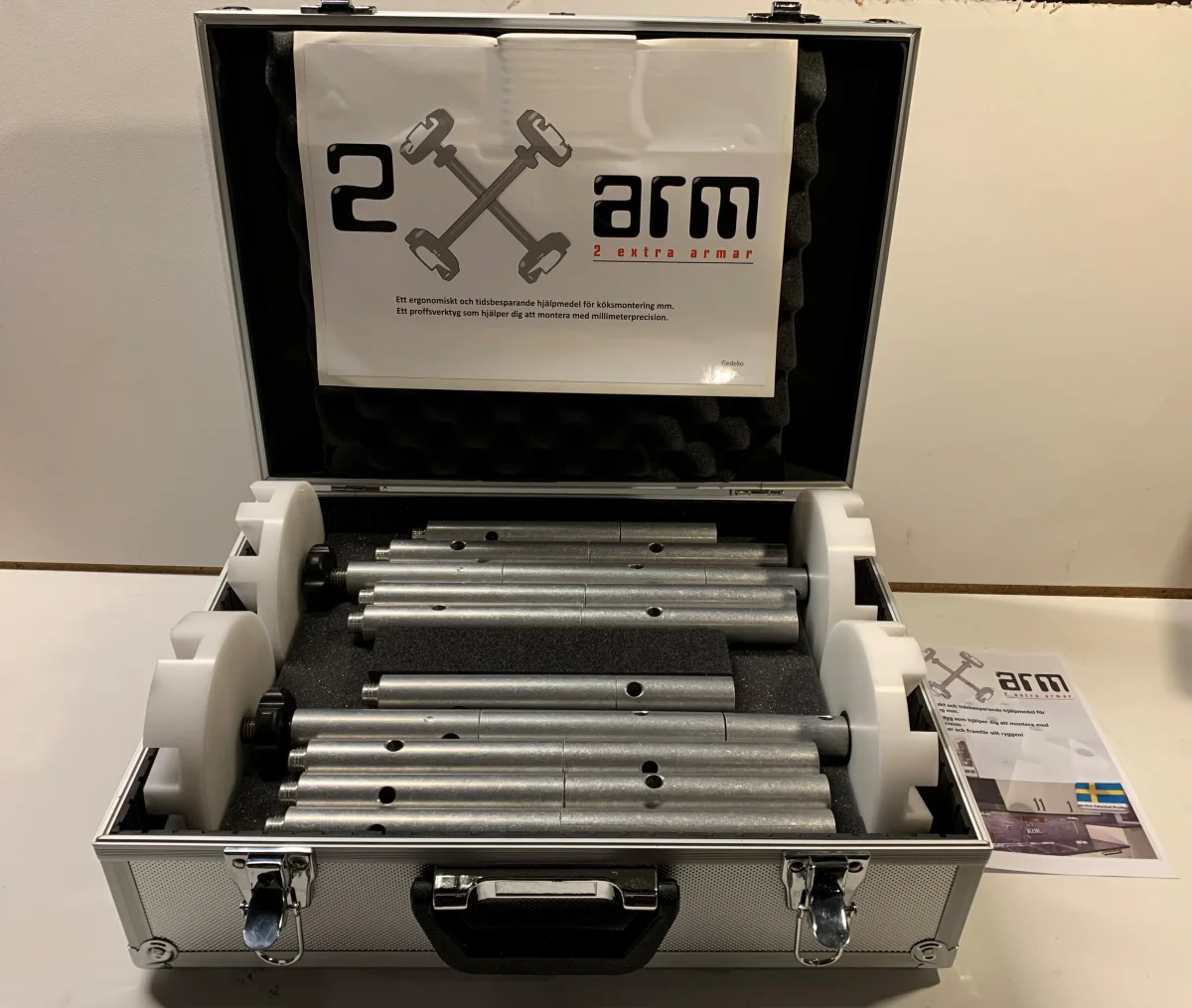 2Xarm hjälpmedel för tex köksmontage, komplett 2 armar inkl 16 förlängningsrör och väska