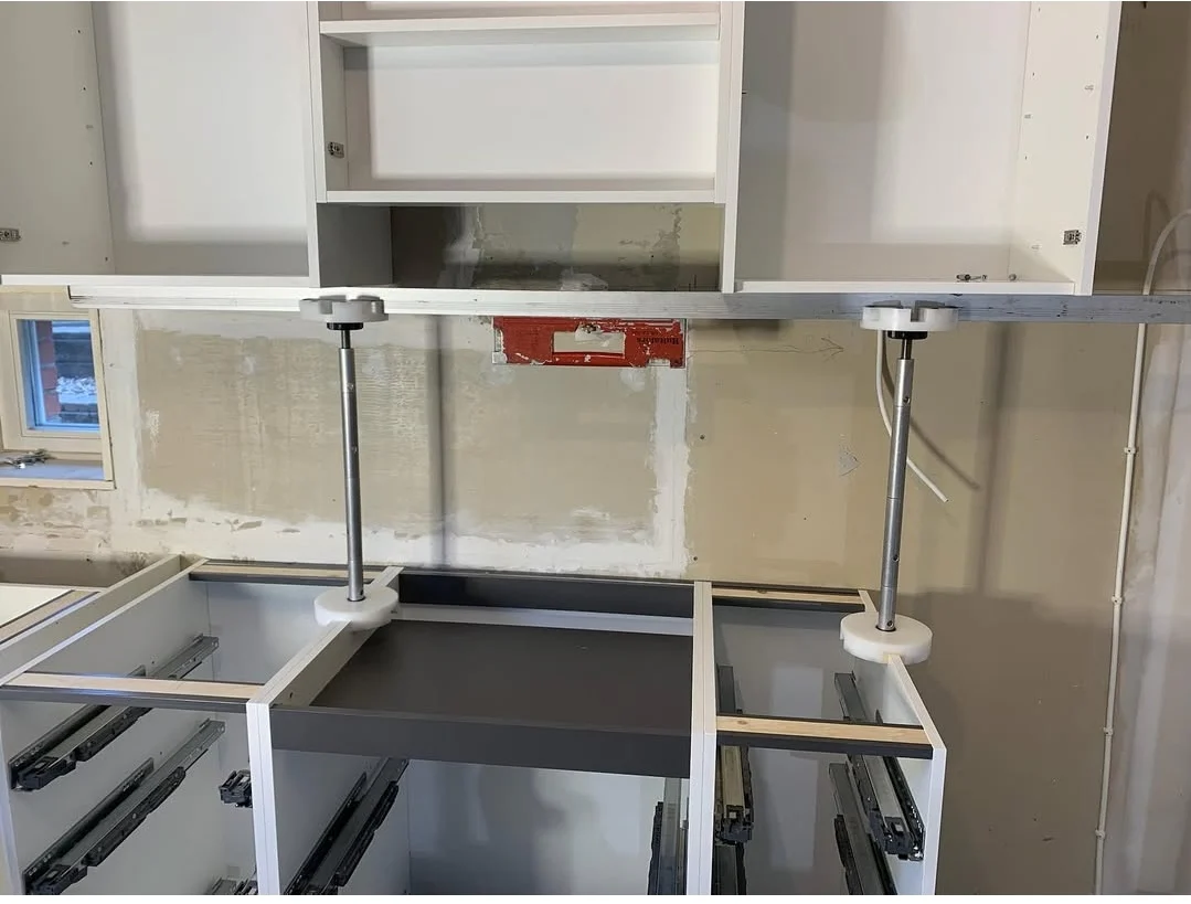 - Bänkskåp och överskåp från golv, bänkskiva eller stomme