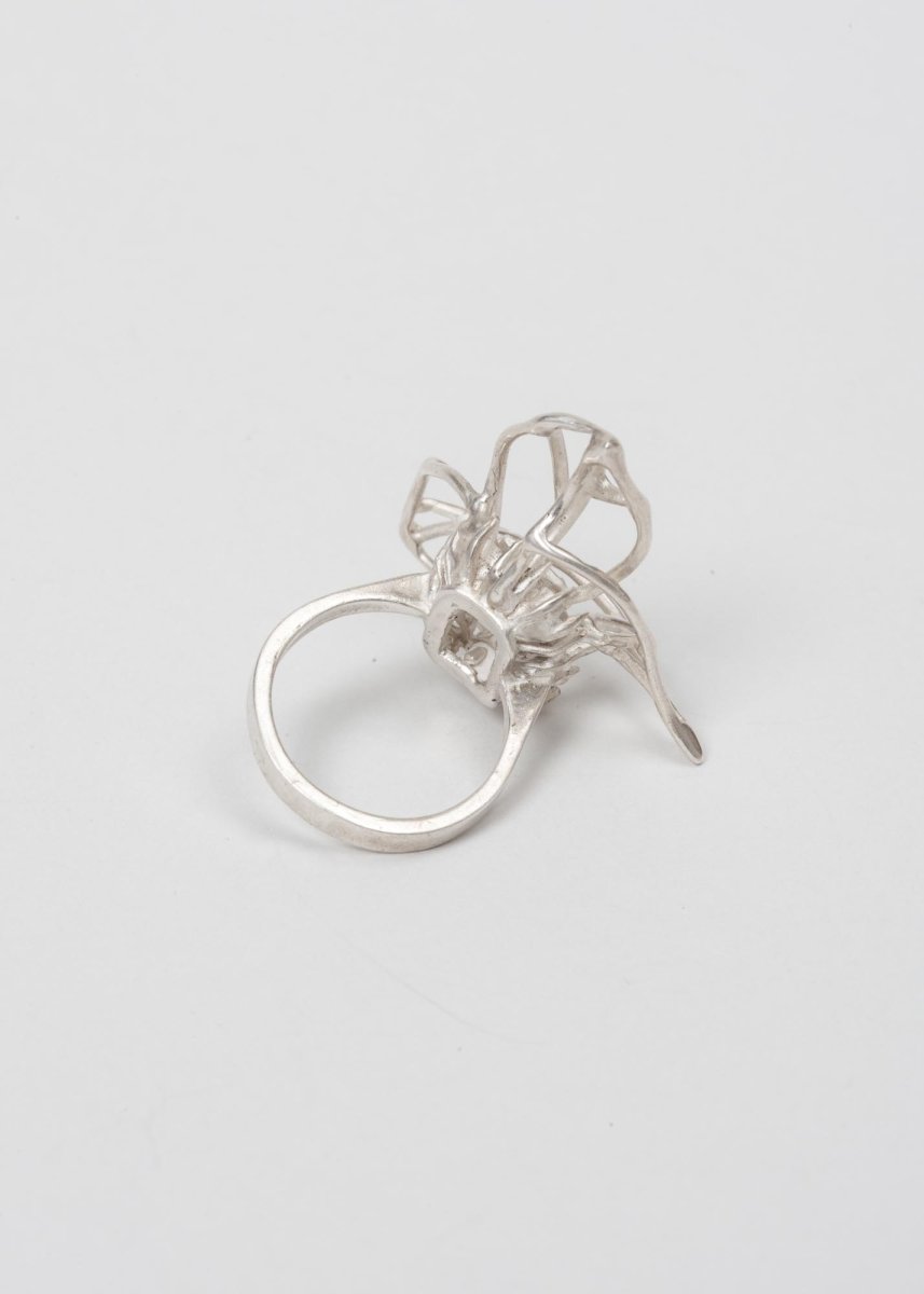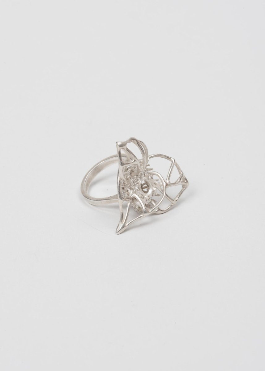 Ring med gjuten blomma i 925 silver. Storlek: 35x30x15mm Vikt: 8g