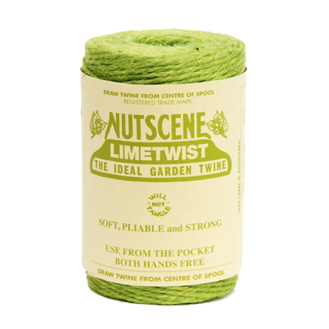 Jute snöre från klassiska Nutscene. Spolarna är välkända av trädgårdsmästare. Man drar garnet från spolens centrum. Jute garnet tillverkas fortfarande i deras fabrik i Angus, Skottland, Nutscene har producerat jute garn, med samma maskiner sedan 1922.