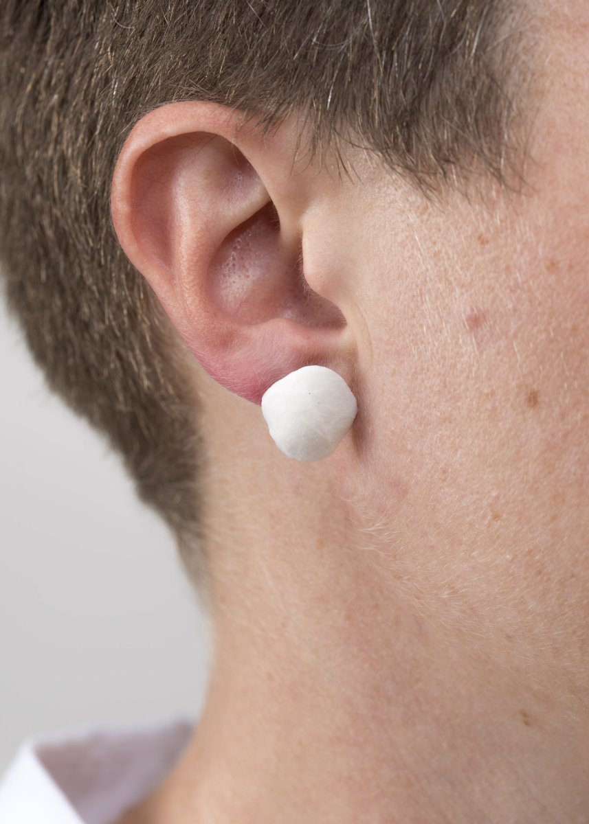 Små, tunna örhängen av porslin med stift och snurrebuss i 925 sterling silver skapade av Sofia Bankeström.