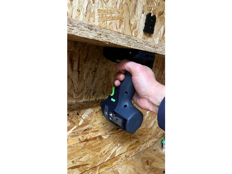 4-pack formsprutade verktygshållare för Festool 18V maskiner Kombinera med Tool Mount Spacers för att distansera ner verktygshållaren för att inte kroken på maskinen ska ta i hyllan. (Länk)